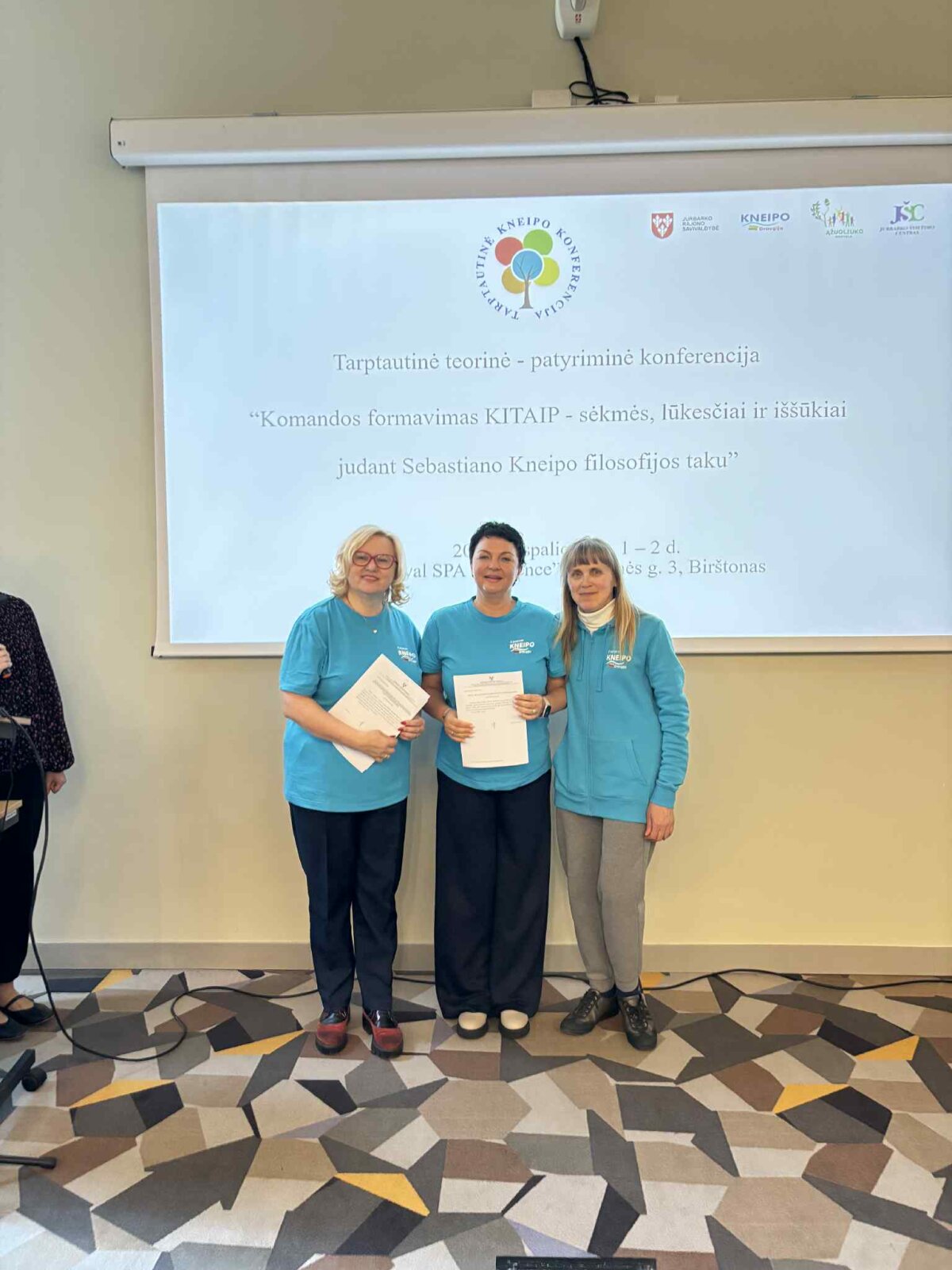 2025 m. spalio 1–2 dienomis Birštone vyko tarptautinė teorinė – patyriminė konferencija „Komandos formavimas KITAIP – sėkmės, lūkesčiai ir iššūkiai judant Sebastiano Kneipo filosofijos taku“. Konferencijoje buvo dalinamasi patirtimi, kaip pasitelkiant Sebastiano Kneipo sveikatinimo filosofiją galima stiprinti komandinį darbą, kurti pozityvią, sveikatai palankią ugdymo aplinką bei skatinti vaikų ir suaugusiųjų sąmoningumą rūpinantis fizine ir emocine savijauta.