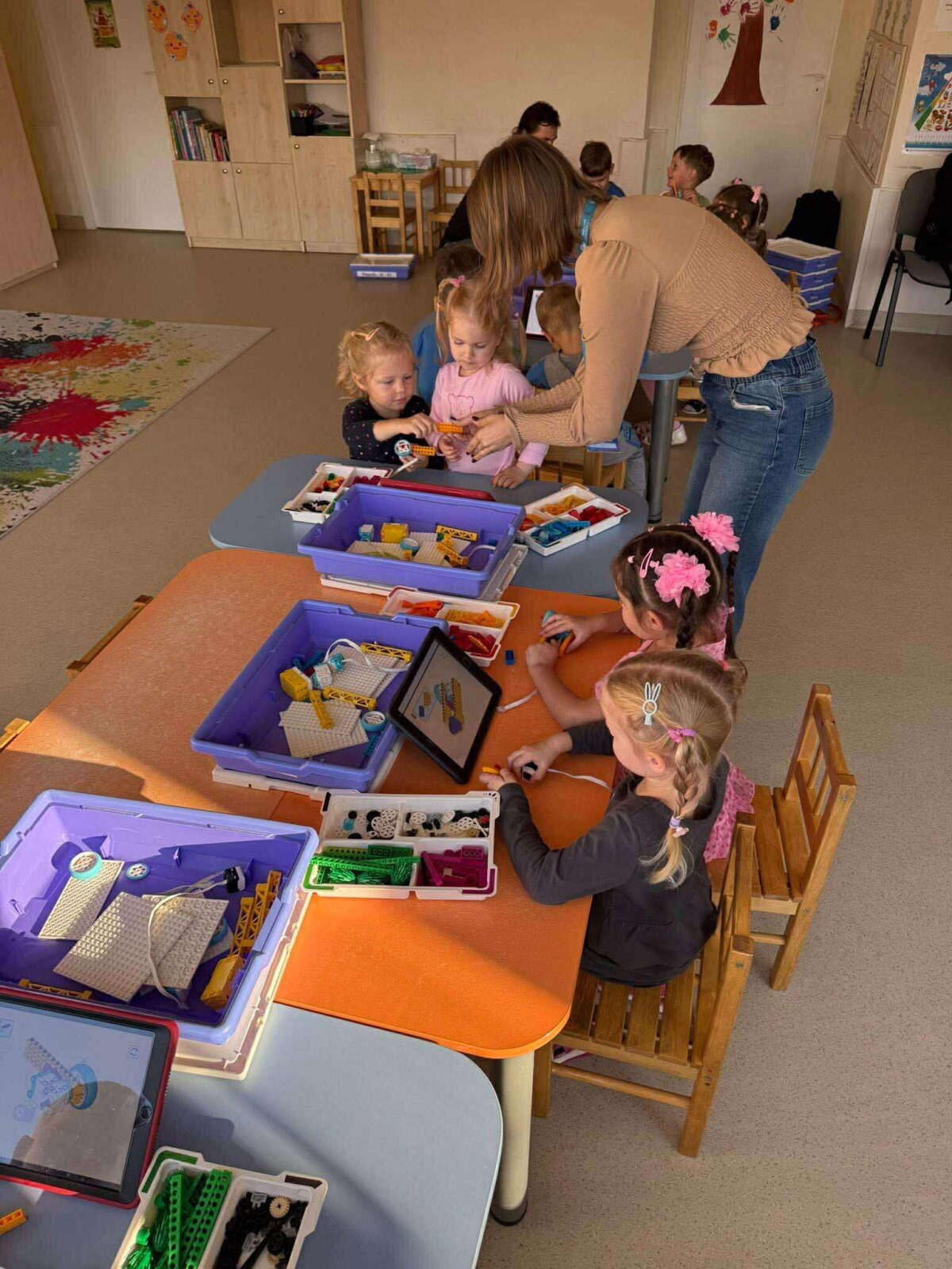 Antradienį, rugsėjo 23 dieną, „Skruzėliukų“, „Pelėdžiukų“, „Boružiukų“ ir „Žiogelių“ grupių vaikai dalyvavo edukaciniame robotikos užsiėmime. Veiklos metu vaikai konstravo važiuojančias mašinėles, susipažino su jų veikimo principais ir išbandė savo kurtus modelius praktiškai. Vaikai mokėsi taisyklingai naudotis įrankiais, taikyti kūrybinius sprendimus bei dirbti komandoje.