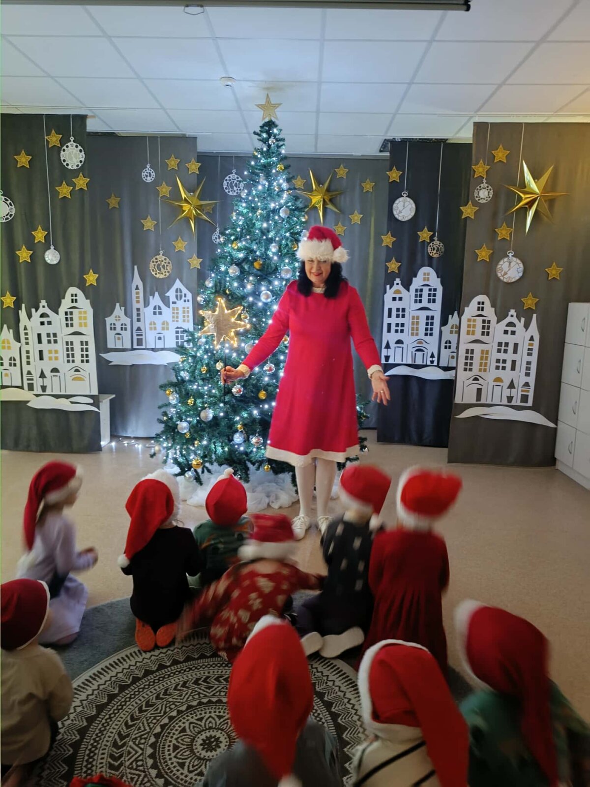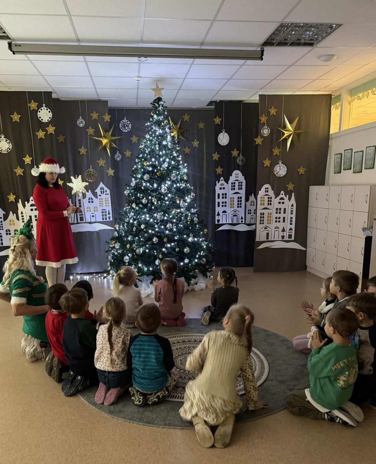 Salėje tvyrojo tikra šventinė nuotaika. Visi susirinkusieji drauge dainavo, šoko rateliuose ir skaičiavo iki trijų, kviesdami eglutę sužibėti. Ir tuomet eglutė nušvito ryškiomis šventinėmis lemputėmis, suteikdama vaikams daugybę džiugesio ir gerų emocijų. Akimirksniu salę pripildė nuoširdus džiaugsmas ir tikra Kalėdų laukimo magija.