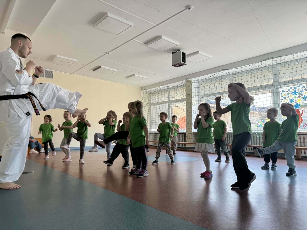 Klaipėdos lopšelyje-darželyje „Atžalynas“ vėl lankėsi karatė klubo „Okinava“ treneris Paulius Sasnauskas. Šį kartą į užsiėmimą buvo pakviesti vieni iš mažiausių – „Kiškučių“ ir „Žirniukų“ grupių ugdytiniai. Iš pradžių vaikai jautėsi nedrąsiai, atsargiai stebėjo trenerį ir naujus judesius. Tačiau žaisminga veikla ir padrąsinantys žodžiai greitai įtraukė mažuosius – jų veiduose vis dažniau sužibo šypsenos.